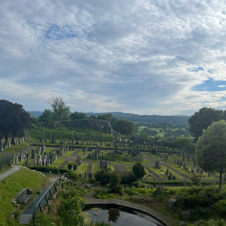 Finishing off the tour we headed back to England. Now by now I am exhausted from the time difference but I had an amazing experience on my last day. We arrived in the glorious town of Bath with its elegant Georgian facades and world famous Roman Baths from which the city derives its name. Bath had the most impressive architecture I saw and it was just so beautiful. However, upon arrival we passed the Jane Austen center which had me freaking out and obsessing over the whole time we were there. We quickly toured the roman baths, which were absolutely gorgeous but please take caution when tasting the water. My brother was the only one out of all of us to try it and he was also the only one of us to catch covid (this is just a joke he caught it from a lady on the plane ride home so wear your masks). We only had 30 minutes to practically run in the rain a few miles to the center where I quickly took a picture with the queen herself and purchased the most beautiful teapot (if you can’t tell already I love tea). It was a miracle that didn’t shatter on the plane ride home in a suitcase but it did. Our last stop before London was to visit the mysterious monolithic stone circle at Stonehenge, which I thought were going to be much bigger but it was still cool to see. They call it a mystery since the stones are not native to here but to Wales and it’s a mystery on how they got here and there’s suspicion of Christ making them but I’m gonna tell you all my completely unresearched theory: Stonehenge was 100% most definitely built by the pagans for rituals and dancing (stones aligned with the full moon) and they will not admit it to be a possibility because they’ve pretty much erased all evidence and history of pagans to make room for their stolen traditions and artifacts and claim them as their own. Argue with the wall. Also, just to put this in real quick, it was disappointing to see one of the places where pagans were known to settle first along with the vikings not have any history or recognition of us. I think I saw one thing dedicated to the Vikings and it was just a replica ship on the side of waterford and it wasn’t even lifesize. It was just sad but not surprising. Our way back to London was quiet because no one wanted to go home but it was still such an amazing view to wrap on. Lots of practically untouched land makes it so beautiful. America could learn a thing or two and let things grow and not build so much but hey thats just me. I also found it amusing how I saw more farms with animals in one town then I did my whole life in the United States. Also the fact that country means beautiful out there while here it’s scary and looked down upon.
